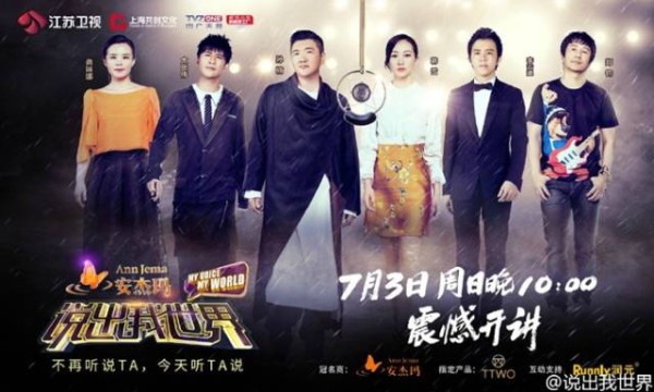 上周日(2016-07-03)晚,由江苏卫视、上海共创文化、中广天择传媒联手打造,安杰玛独家冠名播出的一档明星语言励志演说秀《说出我世界》,以主打“名人演说类”的形式,杀入全新开启的 Q3 季综艺档。