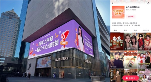 12月28日,活动在德基广场的抖音展区打造“周也心动见面会”,吸引众多粉丝现场参与互动。同时,活动线上发起#心动德基24h ugc话题挑战赛,用户使用德基广场年终盛典主题曲拍同款,打卡广场内的YOMeeDoll企鹅,有机会赢取抖音生活服务心动榜、德基广场和YOMeeDoll企鹅的联名购物袋。截至目前,话题曝光超1600万次。
