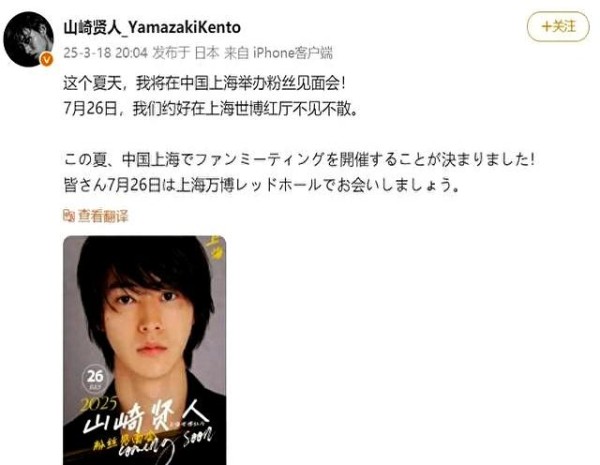 日本国宝男星官宣中国见面会!中国网友:请务必长海报上那样!