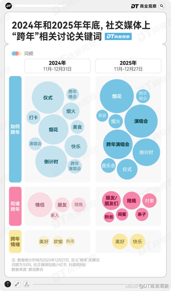 这些跨年行为,其实都指向了同一个变化——年轻人的跨年圈子,正在“向内缩小”。他们从在“大圈子”里狂欢,到有了属于自己的“部落”。