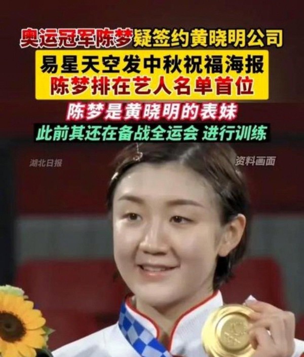 乒坛冠军转型!陈梦签约黄晓明,体育明星跨界新玩法
