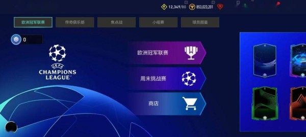 欧洲冠军联赛章节中,玩家可以查看各个不同系列的活动球员卡。