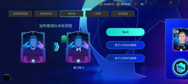 本章节中产出的欧冠明星球员卡,所在队伍获得了焦点比赛的胜利,则该球员可以获得1点能力值提升。