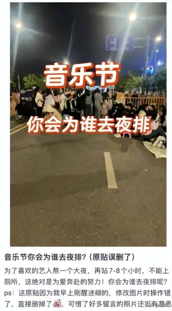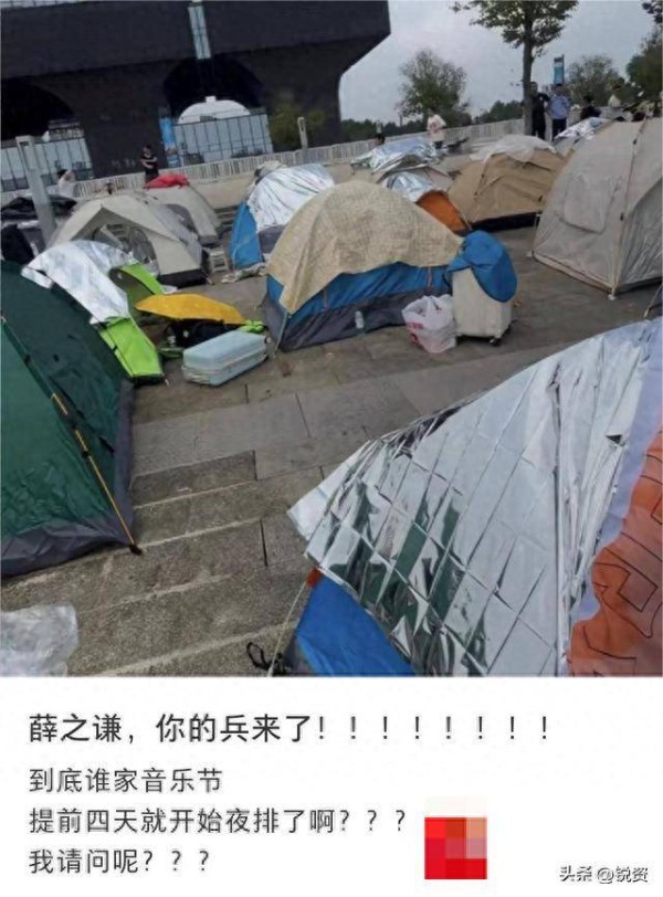 然而,流量艺人的介入并非没有副作用。最明显的问题便是粉丝“夜排”现象的愈演愈烈。为了能在音乐节的VIP区域抢占前排位置,粉丝们不得不提前几天到场排队,且排队的时间越来越长。例如,在10月1日举行的南京咪豆音乐节上,由于阵容中有薛之谦和单依纯等当红艺人,部分乐迷早在9月25日便拿着帐篷前往现场,哪怕遇到恶劣天气也不曾离开,依旧坚持排队。