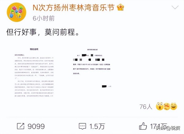 这就导致,主办方在确定了头部艺人后,舞美设备、场地规格、安保标准等都必须跟随艺人的影响力提升,从而推动了成本的进一步上涨,形成了一个“成本循环上涨”的死局。更为棘手的是,艺人临时坐地起价的现象也成为了行业痛点。就像今年国庆期间,枣林湾音乐节因艺人临时提高费用而发布声明,引发了大量讨论。从法律角度来看,若双方就出场费用和演出时间等条款达成一致,即便没有签订书面合同,只要有微信聊天记录或邮件往来等证据,就可以认定合同有效。因此,艺人临时加价可能涉嫌违约。