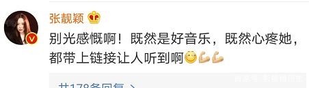 张靓颖更是直接,呼吁网友:“别光感慨啊,既然是好音乐,既然心疼她,都带上的链接让人听。“
