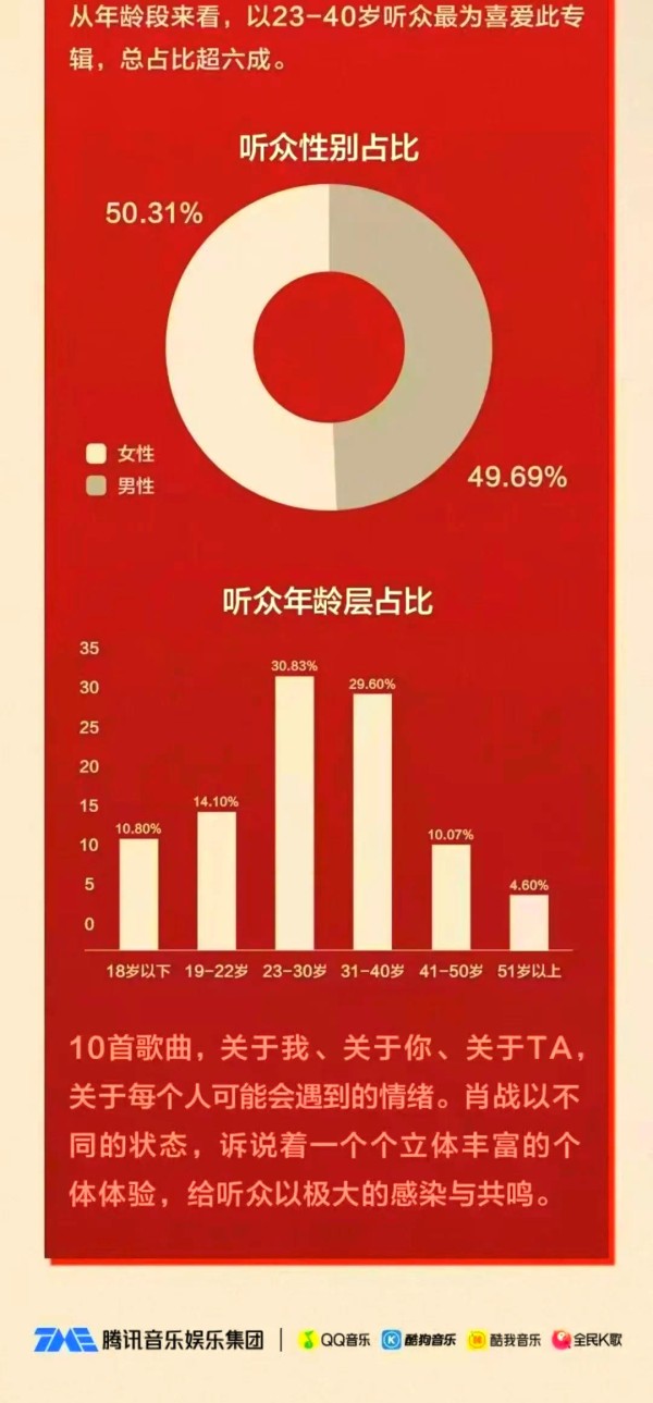 让我们通过数据来一探究竟。首先,关注核心粉丝的数量,这可以从歌曲发布后短时间内“在听人数”的飙升程度来衡量。例如,专辑中的主打歌《我们》在发布后创下了近30万的“在听人数”纪录,这充分展现了肖战粉丝的热烈支持。这些核心粉丝不仅会专门蹲守数据冲榜,更会愿意为肖战花钱,成为他最坚实的后盾。