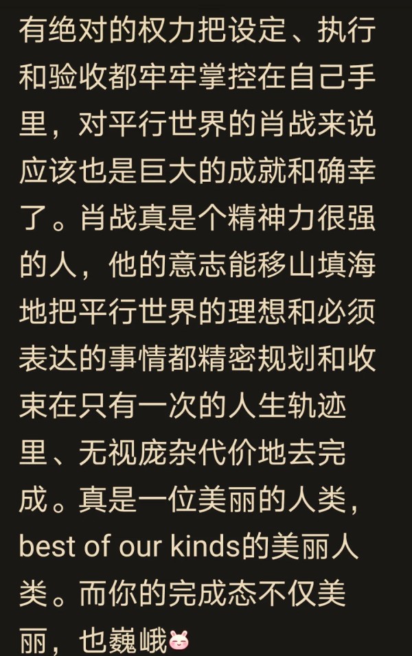 描述了粉丝对肖战及其专辑的强力支持,并对比粉丝与路人听众的市场影响。 这样的非货币回报,才是他真正的财富。许多人都可能真心地羡慕和钦佩他,因为他不仅实现了自己的梦想,还激发了那么多人一同前行。如此阳春白雪、曲高和寡的梦想,如今却吸引了众多人的欣赏、追随与宣传,这绝不仅仅是金钱所能衡量的。