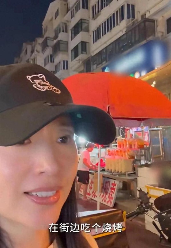 跟亲友吃烧烤那幕最戳人。她非要坐最边上的小马扎,说“这边离烤炉近,拿串方便”,其实是怕挡着别人过路。粉丝凑过来要合影,她赶紧拿纸巾擦手上的油,笑着说“刚啃完鸡皮,别嫌弃我手上味儿大”,合完影还跟人唠两句“大连这天儿就得晚上吃串,配瓶老雪绝了”,旁边亲友笑她“别教坏小孩”,她吐吐舌头的样子,活像没长大的丫头。