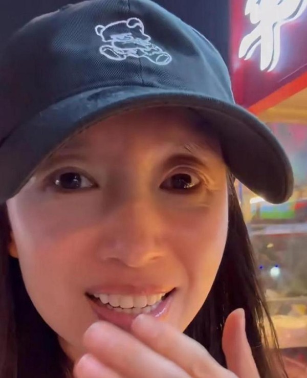 素颜是真敢拍。眼角的细纹跟眼下那点暗沉,凑近了都能数清,但皮肤白得像刚剥壳的鸡蛋,穿件洗得发白的燕麦色T恤,黑棒球帽压到眉毛,坐街边小马扎上撸串时,跟隔壁桌唠嗑的大姐没两样。
