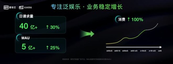 在今年5月,爱奇艺奇麟提出了从效果广告到新娱乐营销的升级,而在刚刚结束的2021爱奇艺iJOY悦享会效果营销专场上,爱奇艺以强势品牌、用户规模、差异化场景、泛娱乐资源为基础,提出“先赋能、再推广、促交易”的全新营销链路。在这条链路中,强大的品牌影响力、海量的用户、强势的多端覆盖,以及泛娱乐联盟,共同构建了爱奇艺新营销理念的基础,爱奇艺联盟正在帮助新娱乐营销完成“再推广”的重任。在悦享会效果营销专场现场,爱奇艺公布了泛娱乐领域的增长数据。