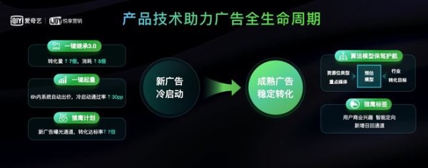 另外,在对新广告和成熟广告的投放方式上,爱奇艺联盟广告也采取了两种不同的方式,助力广告全生命周期。