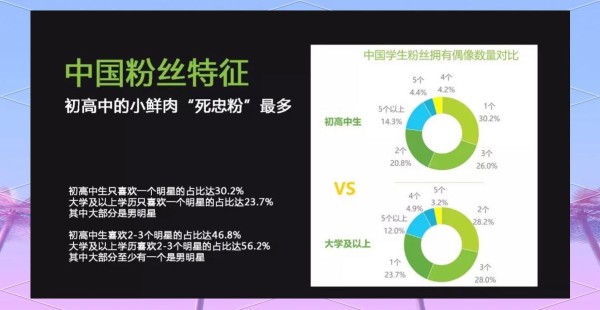 近年来,借助男明星的魅力来吸引年轻消费群体,已成为众多品牌的营销利器。根据艾瑞咨询发布的《中国粉丝追星及生活方式白皮书》,消费男色的主力军是女性用户。在追星群体中,女性占比超过70%。特别是在00后至95后的学生群体中,初高中生对单个“小鲜肉”的喜爱占比高达三成以上,而大学及以上学历的群体则平均喜欢2至3个偶像,其中多数包含至少一位男明星。