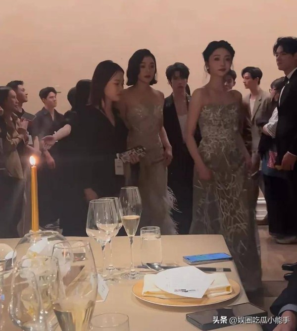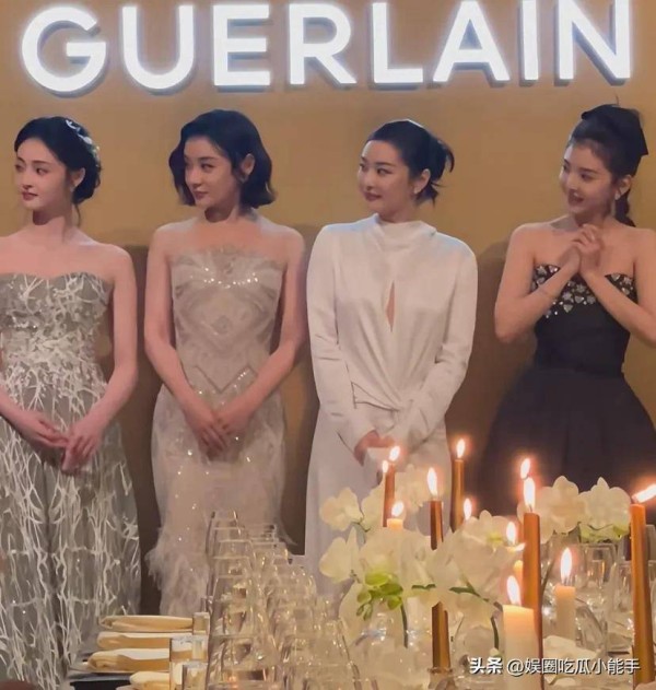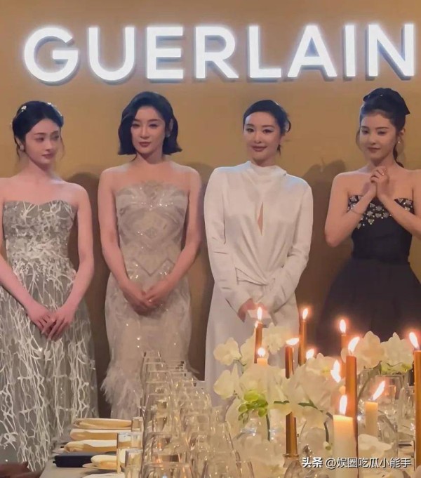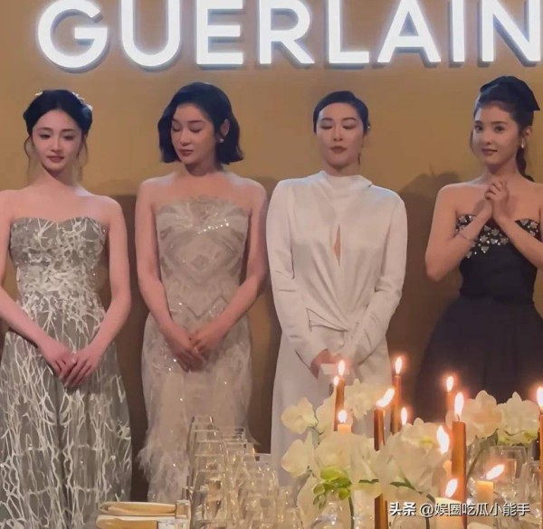 在工作人员的引导下,各位嘉宾逐一入座,高叶作为身穿白色长裙的女星走在最前面,紧随其后的是章若楠与周洁琼。虽然此次活动名义上是晚宴,但归根结底就是个宣传活动,既然大家来了,自然不能空手而归,四位女星还齐聚一堂,接受现场主持人的点名宣传娇兰的产品。