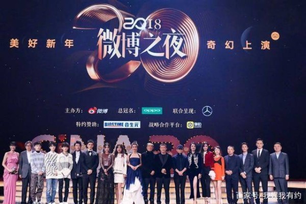 微博之夜众多明星大咖出场。舞台上闪闪发光。