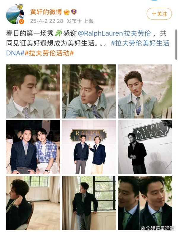 黄轩宋仲基同框!东方儒雅碰撞韩式贵气,拉夫劳伦大秀顶流相遇