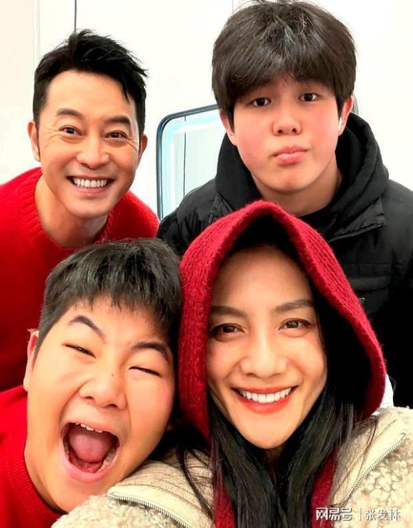 沙溢一家四口幸福出镜,两个儿子越长越像爸爸,网友:胡可好美