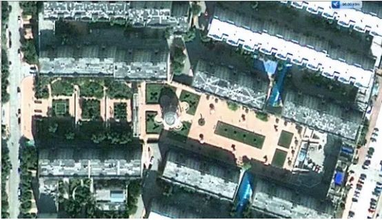 罗某又打开Google earth,查看市区俯视图,在C区位置顺利找到了与王珞丹微博照片中相符的小区俯视图,从俯视图近景中可以清晰地看到小区中连成直线的三个花坛和白色的长方形拱门。