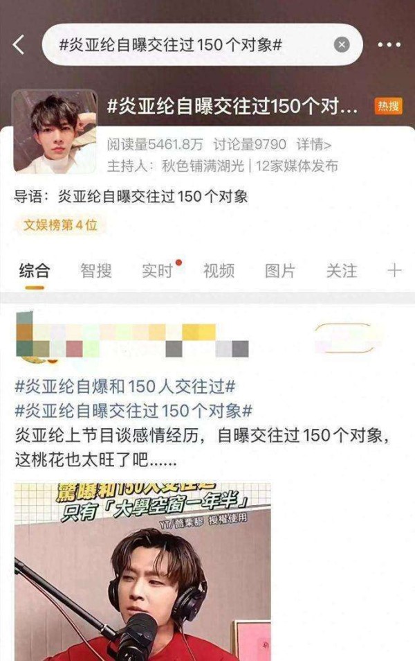 12月29日,炎亚纶自曝曾交往过150人这一话题迅速登上热搜,引发了舆论的广泛关注。这个曾有性侵前科,且充满黑料的男星居然依然未被封杀,实在让人百思不得其解。
