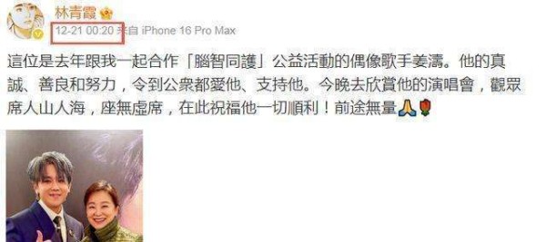 71岁依然熬夜追星的,只有林青霞,而且也只有她敢这么做。12月20日的零点过后,她戴着灰色围巾悄悄进入亚洲博览馆,没走贵宾通道,而是自己刷票,和普通粉丝一起坐在那排塑料椅上。旁边的一个小妹妹认出了她,激动得几乎尖叫出来,她却轻轻嘘了一声,低声说:别吵,别挡住后面的人看姜濤。那一瞬间,我看到照片,心里只剩下一个念头:原来‘偶像’这两个字,到老了依然无法治愈。