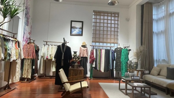 目前,她在店铺橱窗前挂了一排新中式风格的上装、马甲、连衣裙,只要进店一眼就能看到,“设计师跟着潮流走,我们也跟着潮流卖。”