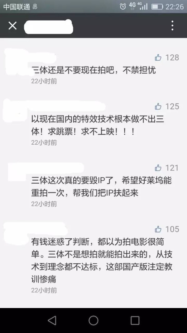 也有人比较惋惜:“我们当时猜测的是,游族影业随便把《三体》拍一下,但是会把接下来的游戏开发作为重点,但估计第二部和第三部就把版权卖给别人拍了,但没想到他们连第一部也搞不定。”