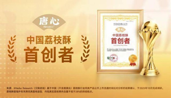 近期,唐心食品获全球领先的新经济产业第三方数据挖掘和分析机构iiMedia Research(艾媒咨询)授予的“中国荔枝酥首创者”市场地位确认。