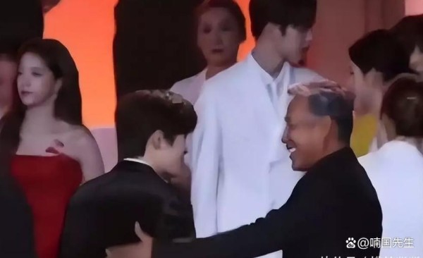 颁奖典礼散场环节,新晋影帝易烊千玺正准备离场时,遇到了在通道处驻足等待的陈道明。
