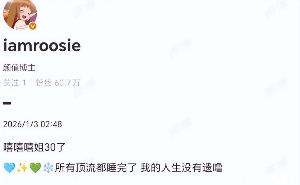 刚进入新的一年,娱乐圈就被一则消息搅动得沸腾了。一个名不见经传的网红,在深夜发布了一条令人震惊的话:三十岁,顶流睡遍,人生无憾。这句话立刻引爆了整个网络。若只是随便说说,倒也没什么,但她不仅口无遮拦,还点名道姓,把鹿晗、林更新、范丞丞、蔡徐坤等一众当红明星列举了出来,甚至还晒出了聊天截图和一些明星的私人物品照片,甚至说檀健次的T恤还留在她家里。