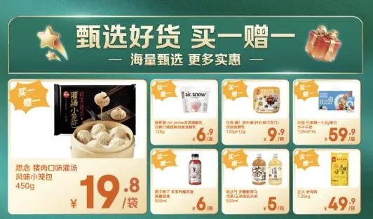 元旦期间,多款精选商品更享“买1赠1”优惠活动,如思念灌汤风味小笼包、海底捞花生芝麻酱百威黑金啤酒、瑞士莲软心黑巧克力等等。依托七鲜供应链优势,各类大牌商品进一步降价,实现“高品质+亲民价”的组合,助力市民轻松囤货,实惠过节。