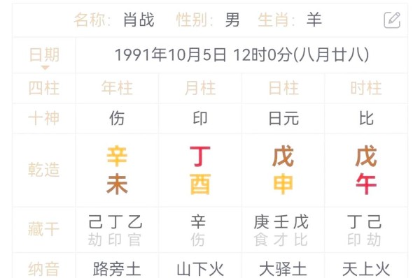 肖战先生,一位备受瞩目的明星,其生日虽来自网络,但出生时间却经过学易者的精心推算,颇具娱乐性。他出生于1991年辛未年,根据纳音被归类为路旁土。在八字命理中,肖战日柱戊申与年支未土相通,正印丁火紧贴其身,同时得到时干戊土比肩的扶持。此外,月干丁火又与时支午火相通,使得正印的力量更为强大。