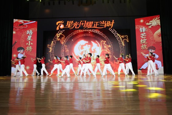 在“发展·星途璀璨”篇章,学校通过一系列精彩纷呈的社团成果展示,全方位呈现了学校“五育并举”的丰硕成果。舞蹈《迎风飞扬》、健美操《同心向未来》尽显少年活力;英语朗诵剧场展现了学子扎实的语言素养与自信风采;合唱《小雅·鹿鸣》《美丽的村庄》传承文化根脉;英文戏剧《昭君出塞》架起国际文化交流的桥梁;非洲鼓与竹笛合奏《龙的传人》以激昂的节奏碰撞出传统与现代的韵律之美;武术表演《武林小将》则彰显了中华传统精神。每一个节目都是学校“人人出彩”育人理念的生动写照。