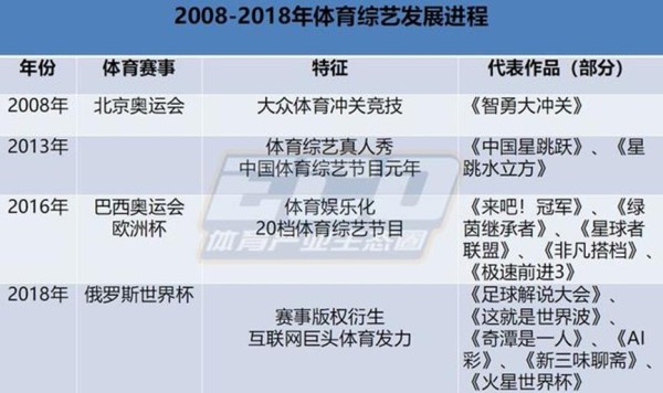 电视剧、电影甚至综艺都开始或多或少地与体坛沾边,比如奥运结束之后,网友在微博自发组成了运动员们的“团综”话题,篮球类综艺《这就是灌篮》已经播到第四季,杜峰、郭艾伦也成了综艺常客。2008年到2018年,国内累计体育综艺有15档。
