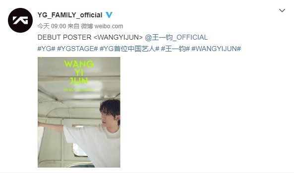 今日,YG公司官方微博宣布,王一钧正式出道,这是YG公司成立23年以来首次签约中国艺人,作为BIGBANG、BLACKPINK、WINNER、iKON、南柱赫等知名艺人的后辈,中国艺人王一钧出道消息一经发出,便引起轰动。