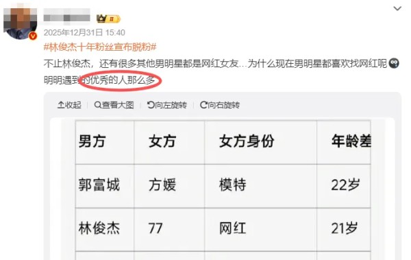 这两天大家应该刷到过一个新闻,林俊杰结婚,找了一个比他小20岁的网红,争议特别大,很多人表示,为什么明星也好,企业家也罢,这几年都流行找网红,为什么不找更有价值的高认知女性。