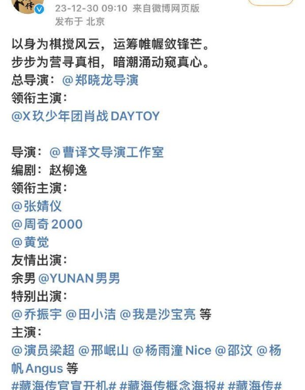 他将出演由郑晓龙执导的新剧,与张婧仪搭档演绎。在年末时,许多行业都迎来了淡季,但与节假日相关的娱乐产业,特别是娱乐圈,却处于旺季。