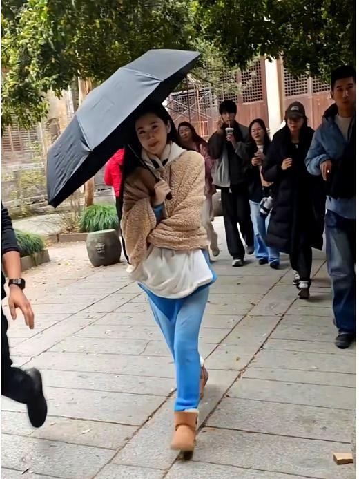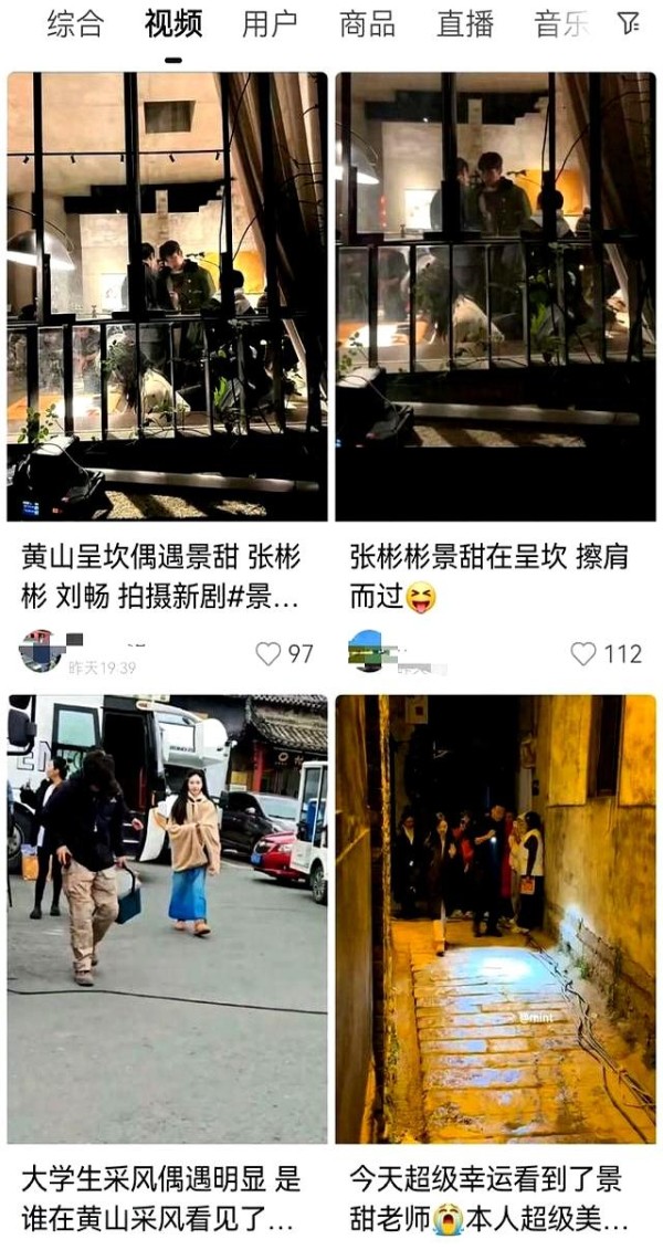 社交平台上,11月4日上传的视频显示景甜在呈坎微笑打招呼,路人能近距离看到演员的从容。