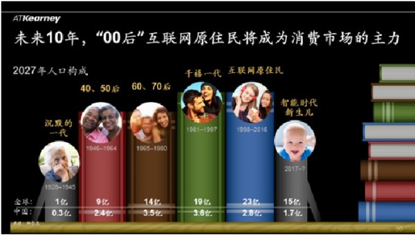 虽然目前“80、90后”是中国市场的核心消费群体,但随着“00后”互联网原住民一代的消费力量增强,原有的市场格局将被打乱,首当其冲受到影响的将是原本天然获得公众好感的大品牌们,品牌们必须尽快调整运营思路。这是管理咨询公司科尔尼(A.T. Kearney) 在11月10日发布的《未来消费者:从“人以群分”到“千人千面”》报告中提出的观点。