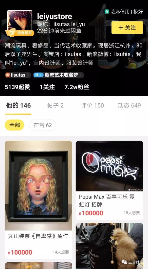 来闲鱼三年不到,他就通过展示自己的藏品积累了超过7万互动密切的粉丝。lei_yu现在每天一有空就会很习惯性地去翻一下闲鱼,看看有没有粉丝留言。