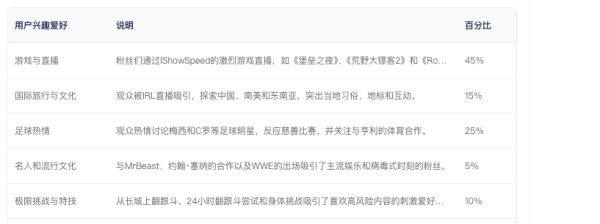 结合内容类型偏好分析,数据显示其受众对以下主题最感兴趣: