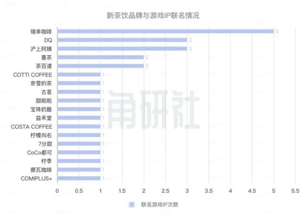 根据统计数据显示,在过去的一年多里,“游戏IP”与新茶饮品牌的合作共28起。其中,“瑞幸咖啡”这一个品牌就占据了5起,联名情况最为显著。