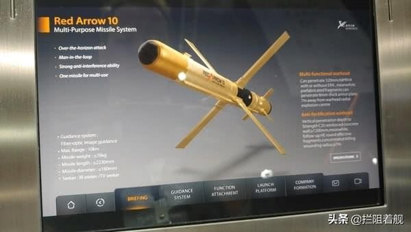 红箭-10反坦克导弹由北方工业制造,也被称为HJ-10A。该导弹有4种不同的导弹变体,包括电视和红外制导的反坦克和反掩体型。它可以安装在各种车辆上,包括卡车、装甲运兵车和步兵战车。该武器用于连级规模的编队,有1个指挥和侦察类型,6-8辆导弹发射车和3-4个负责重新装填弹药和其他物资的运输车辆。反坦克导弹可以穿透320毫米的装甲,爆炸后碎片可以穿透7-8毫米的装甲。反掩体型能够破坏深达1.2米的钢筋混凝土墙。