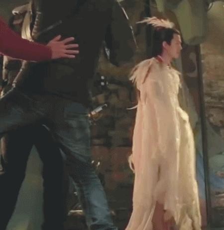 仙侠剧的特效场景,看似神奇无比,实际上背后也是充满笑料的。在《青云志》中,易烊千玺嗖的一下消失飞到天上,但揭示花絮后,原来是他原地上蹦跶了一下,这是何等神奇的“蹦云”术啊!而在《三生三世十里桃花》中,男主和司命在凡间屋顶上的画面,被吊在威亚下,和被锁喉没什么区别。至尊无上的神也难逃“锁喉”的命运,赵又廷在后来的采访中吐槽:“常常笑场!旁边的人要忍住笑,还要配合。”