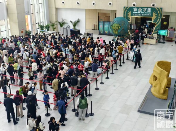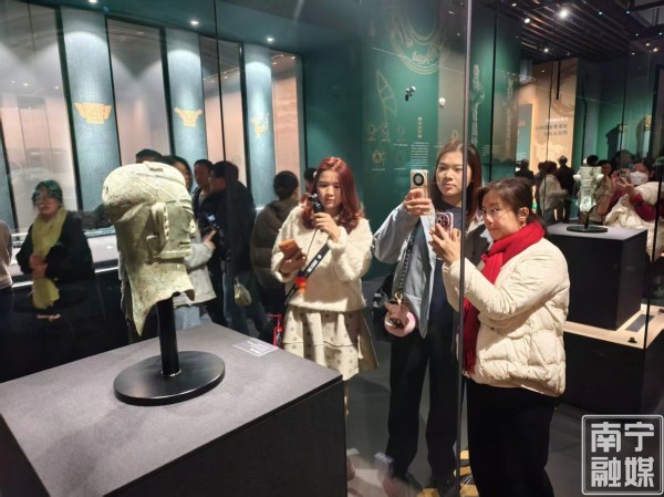 “听说这次展览有三星堆文物,我们全家都特别期待。”南宁市民黄先生高兴地说。此前,黄先生在电视上看到三星堆青铜面具时,被那神奇的造型深深吸引。2025年暑假,一家三口特意前往成都旅行,却因未能预约上门票而留下遗憾。让黄先生感到惊喜的是,2026年元旦在家门口就实现了看展的愿望。