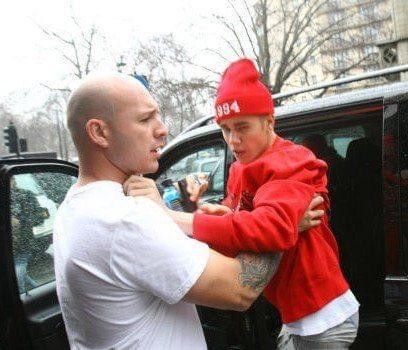 在被摄影师连番嘲弄后,已上车的比伯更激动下车理论,当时贾斯汀·比伯急于上车而推到了摄影师,摄影师认为这是对他的人身攻击,随后对其进行嘲弄,说道:“白痴,滚回美国。”已经上车的贾斯汀·比伯冲出来想与其理论并且表示要打得这名摄影师满地找牙,幸好被陪同的保镖拦住。