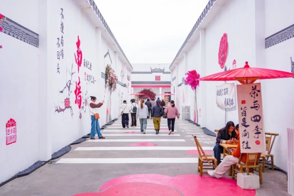 改造后的思卡诺打折村整体主打中国风,外立面保留红砖白墙肌理,融入国画、流水景观等国风元素,与村内清澈河道、竹篱 “小三园” 共同构成一幅和美宜居画卷。打折村内,悠扬婉转的国风乐曲循环播放,让消费者仿佛置身于江南村落,既提升了购物体验,也成为许多人专门前来打卡的“网红地”。