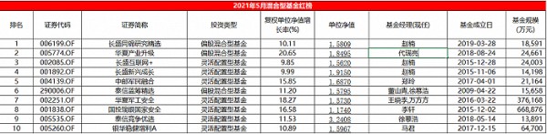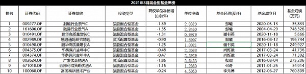 表:5月份混合型基金红榜来源:wind界面新闻研究部