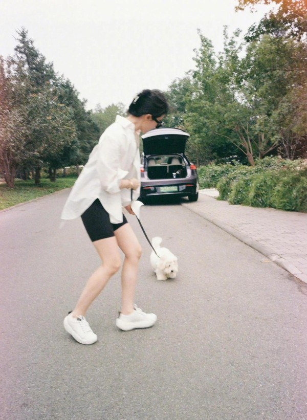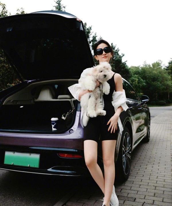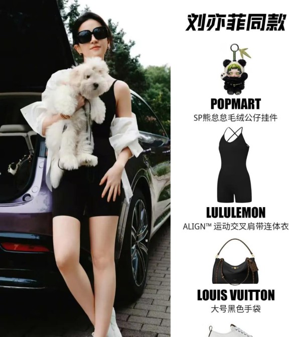 就在前几天,刘亦菲在社交媒体上晒出一组“香车美人”的照片。照片里她穿的是lululemon的黑色连体衣,抱着狗狗坐在车后备箱上。这套装扮完美展现了她匀称的身材,不是那种干瘦的类型,而是充满健康活力的美。