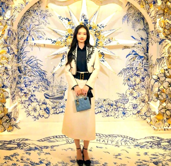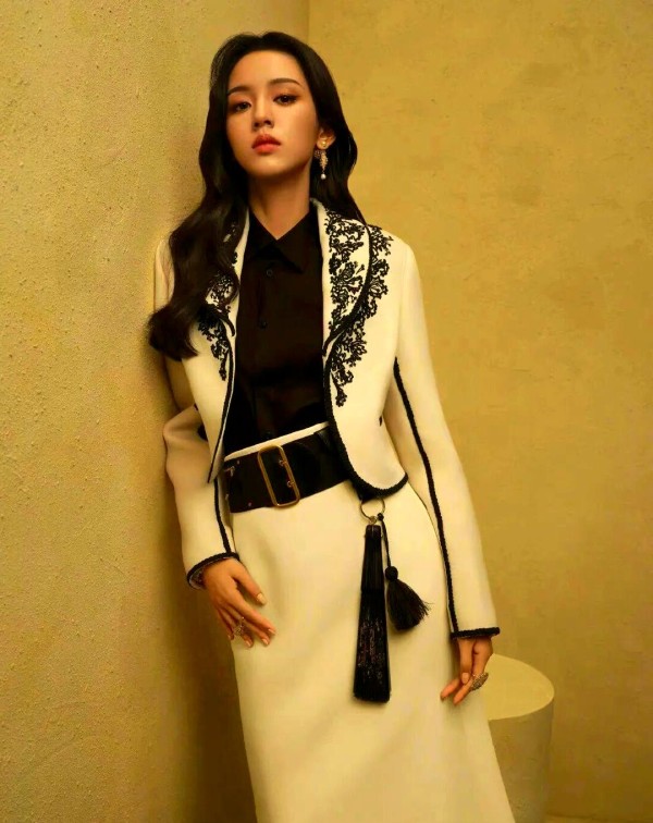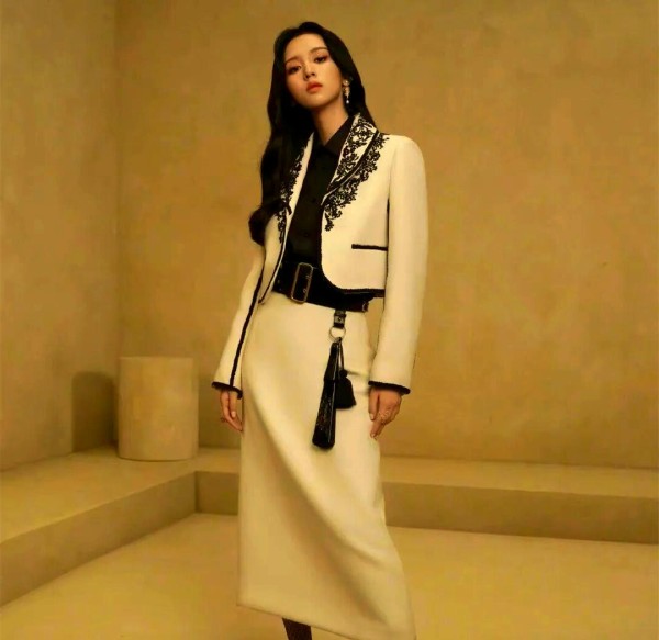 其实,这款造型颇具设计感,以小西装为上身设计,流露出法式时尚的名媛风情。孙伊涵以黑白刺绣小西服与白色套裙展现了现代与古典的融合,表现出一种优雅且高贵的气质。小西装的最大亮点在于其凸显腰线的效果,通过巧妙的设计,上提腰线能够优化身材比例,使得下身线条更加修长,即便是身材娇小的姑娘也能轻松穿出大长腿的即视感。此外,小西装的高级洋气也是其魅力所在,相较于传统西装的沉闷与古板,小西装更显得修身合体、时尚感十足,给人一种别样的法式风情。