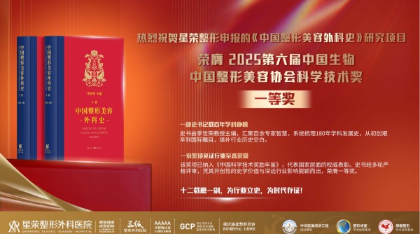 重庆星荣整形外科医院作为重庆首家三级整形外科医院、中整协认证“5A级医美机构”,以及全国首家获得医疗美容专业药物/医疗器械临床试验GCP双机构备案的非公医疗机构。医院坚持以学术引领临床,以创新驱动发展,不仅在技术上追求卓越,更在学科建设与行业文化积淀上倾注心力。医院积极搭建高水平学术交流平台,于今年成功承办了“第一届全球医美大健康产业大会”,汇聚国内外权威专家与行业同仁,共话技术前沿与产业未来。未来,星荣整形将继续深化在整形美容历史研究、技术革新与行业标准建设等方面的投入,助力整形美容学科在传承中创新,在创新中引领。期望与行业同仁携手,不断丰富与拓展《中国整形美容外科史》所承载的学术精神与文化使命,共同推动医美事业向着更高品质、更广维度、更深内涵的方向稳步前行。
